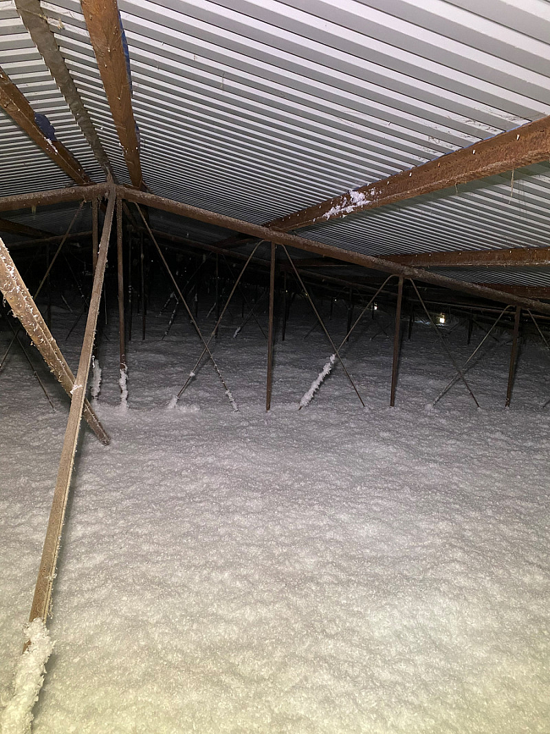 Výkrm kuřat trvá 34 dní od malého kuřátka po odjezd na naše talíře. Během těchto dnů se spotřebuje obrovské množství energie, jelikož v prvních dnech je potřeba vytápět halu na 34 stupňů. Stará stříkaná PUR izolace měla svá nejlepší léta za sebou (třeba fotografie někomu pomůže v rozhodování, zda-li stříkanou, nebo foukanou izolaci) a tak unikalo velké množství tepla. Foukaná izolace tedy byla jasná volba a nyní se náklady rapidně sníží.