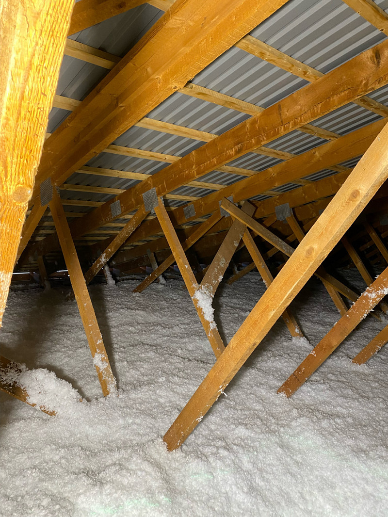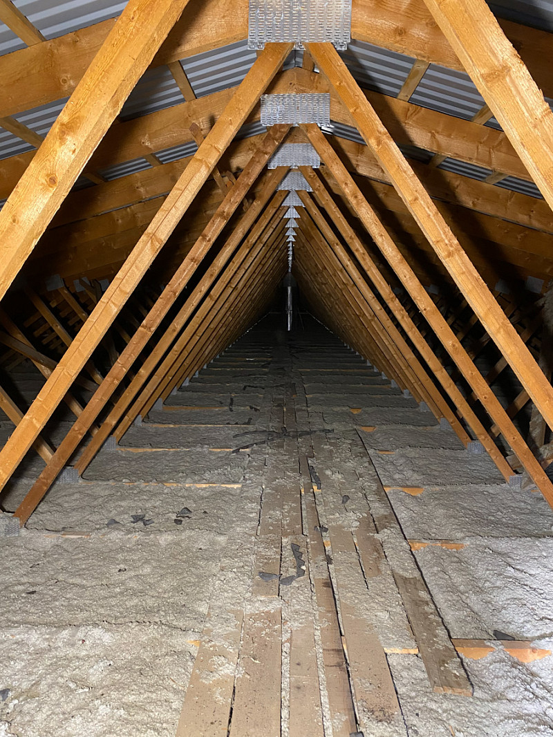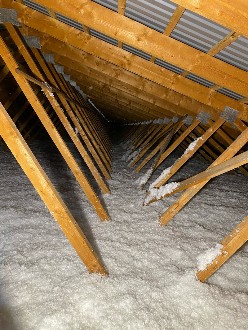Stará izolace tvořila vrstvu pouhých 5-10 cm. Majitelé chtěli nafoukat materiál URSA Pure Floc o tloušťce 30 cm.