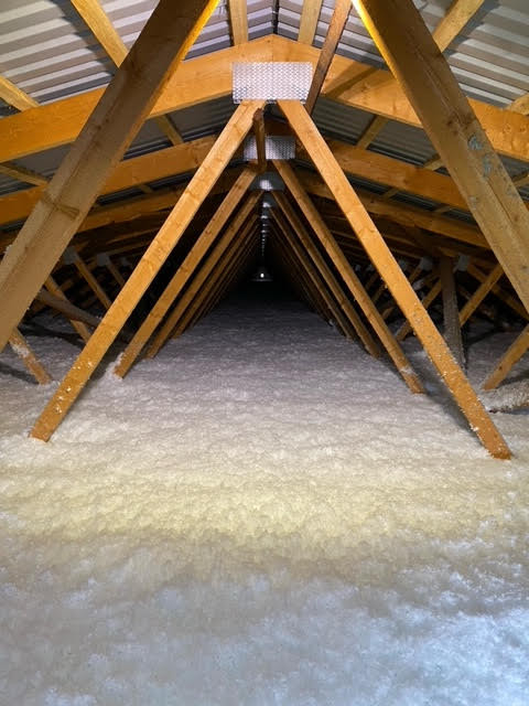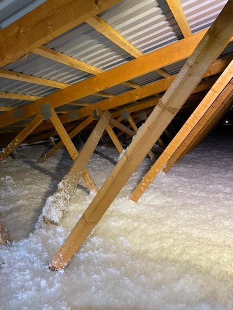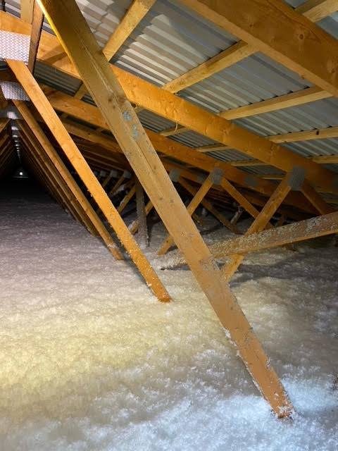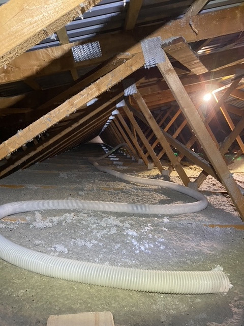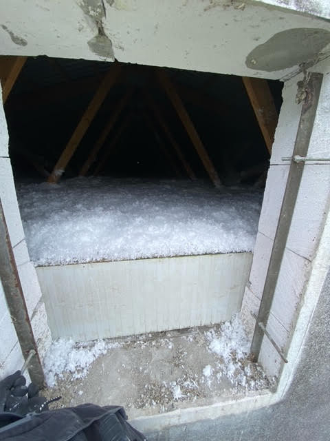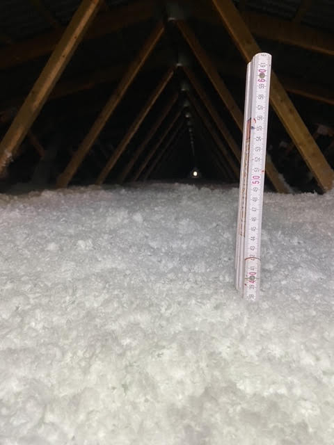Stará izolace tvořila vrstvu pouhých 5-10 cm. Majitelé chtěli nafoukat materiál URSA Pure Floc o tloušťce 30 cm.