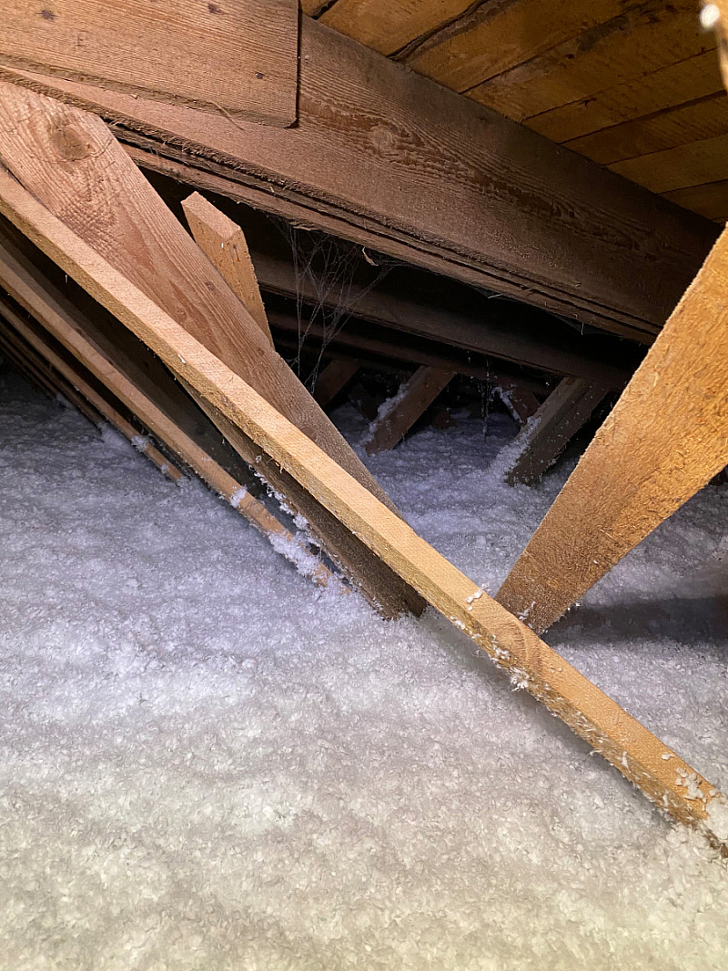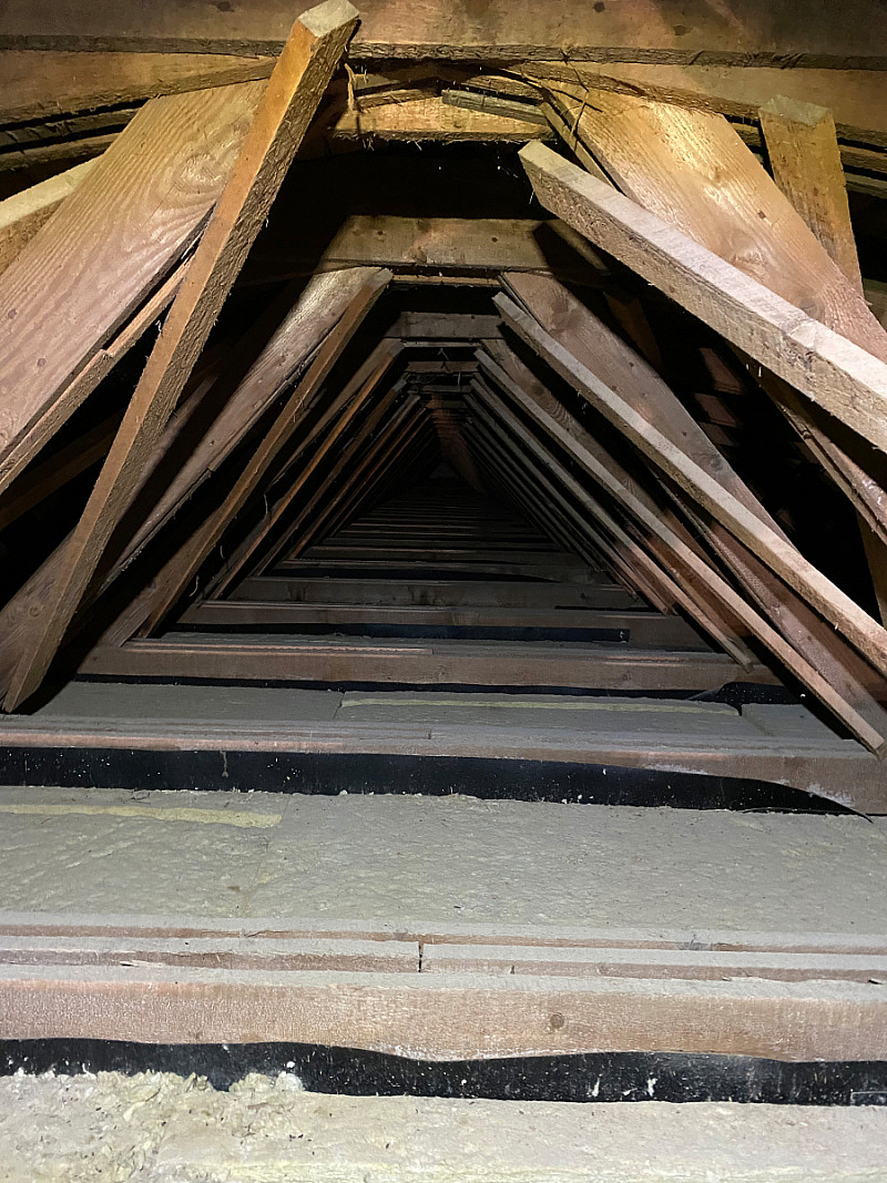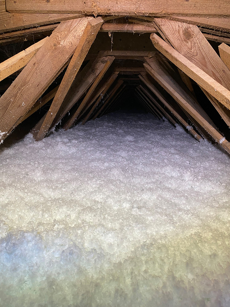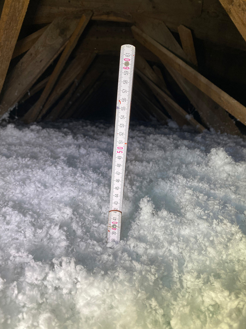 Stará izolace tvořila vrstvu pouhých 5-10 cm. Byl použit materiál URSA Pure Floc o tloušťce 30 cm.