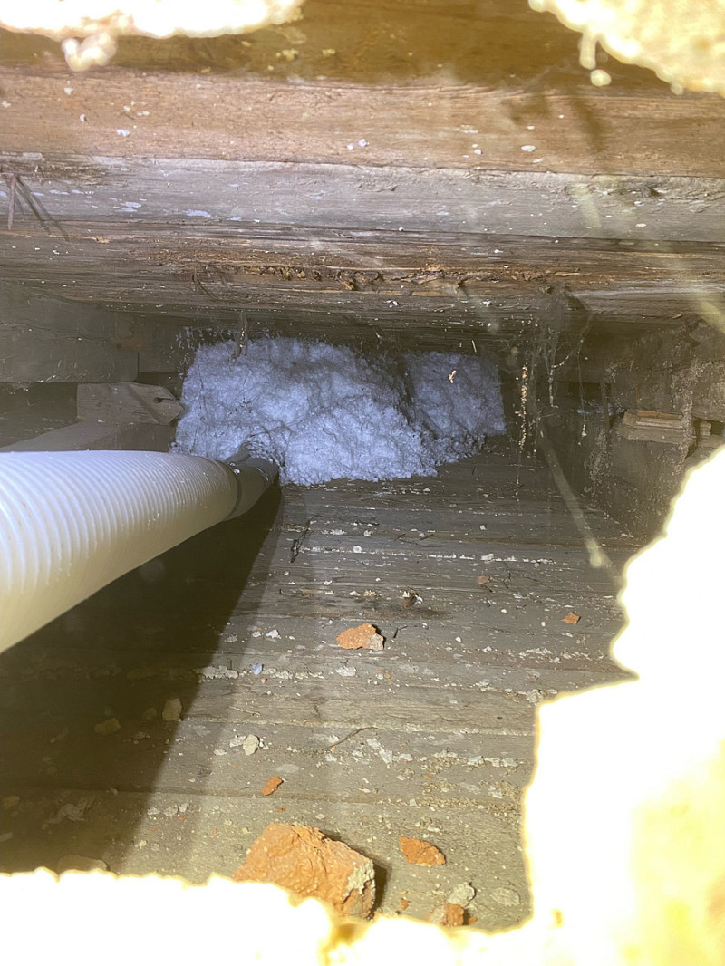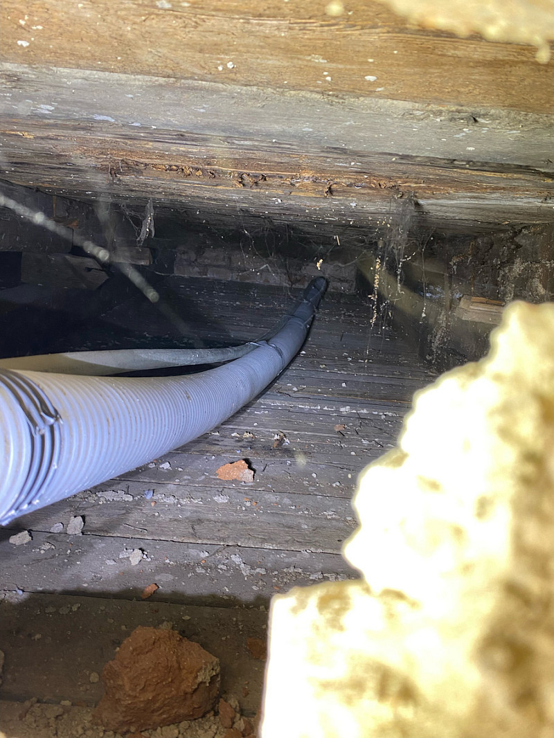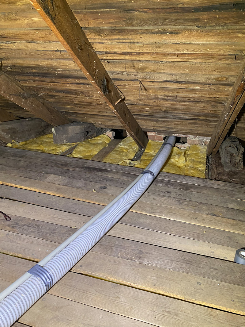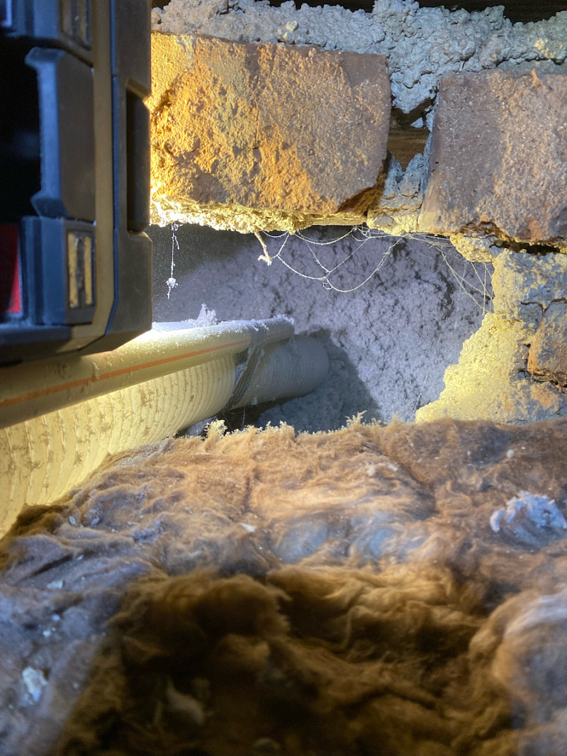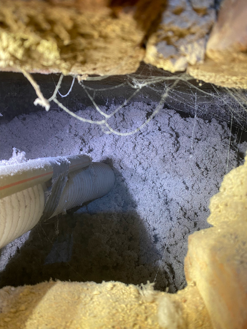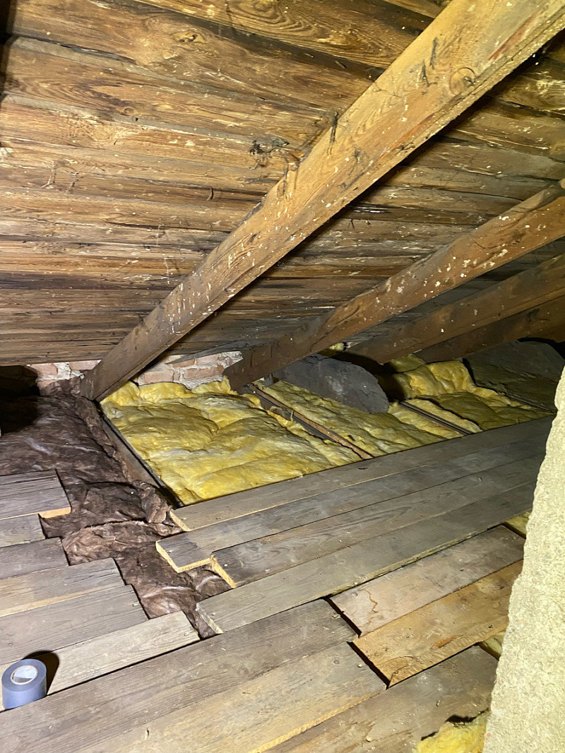 Přístup byl pouze přes malé otvory ve zdi, ovšem každý problém má své řešení a tak je každý kout vyplněn izolací.