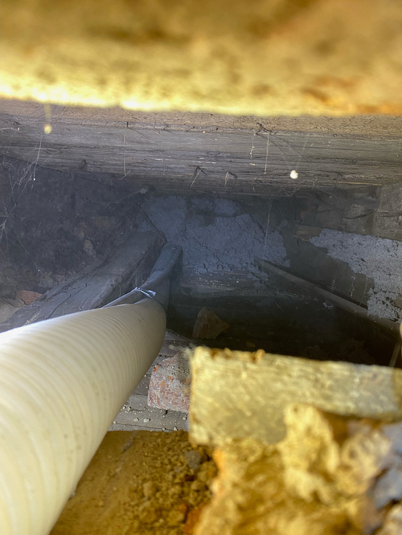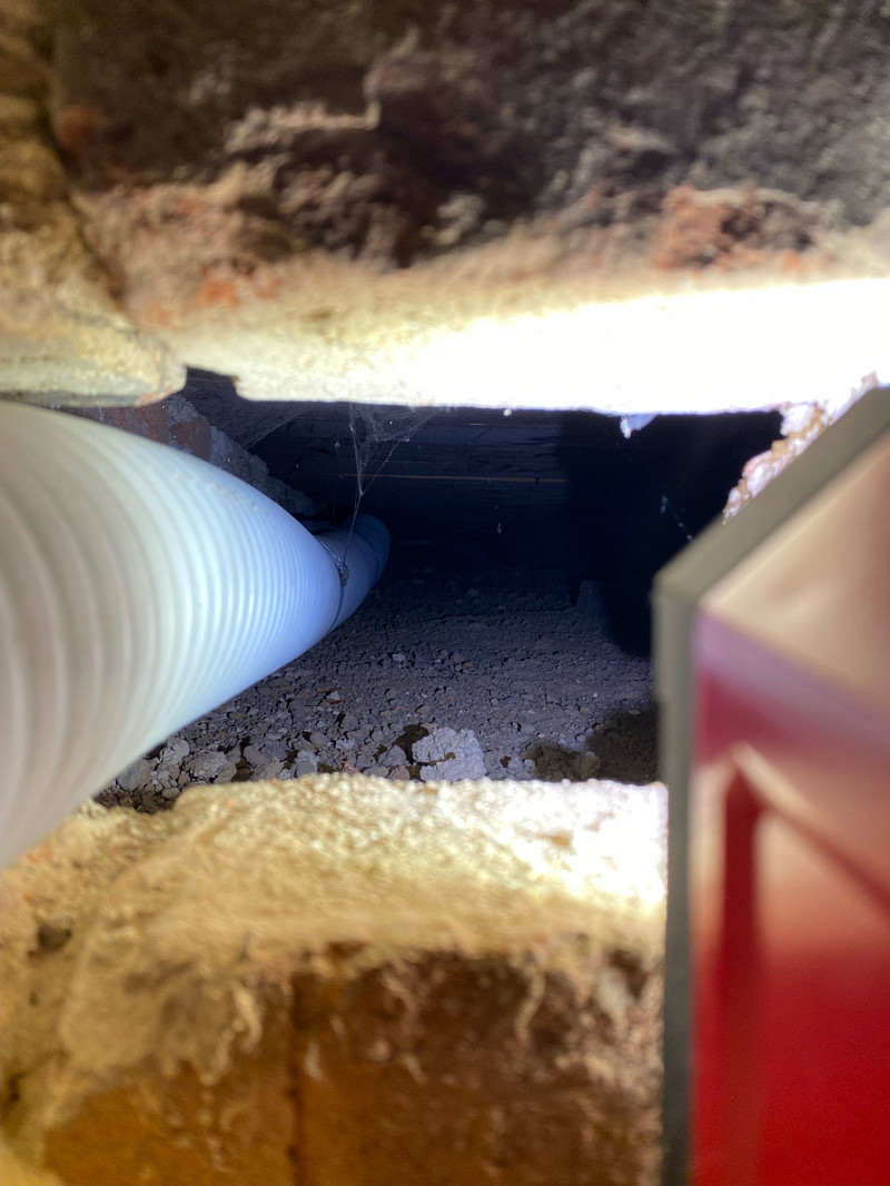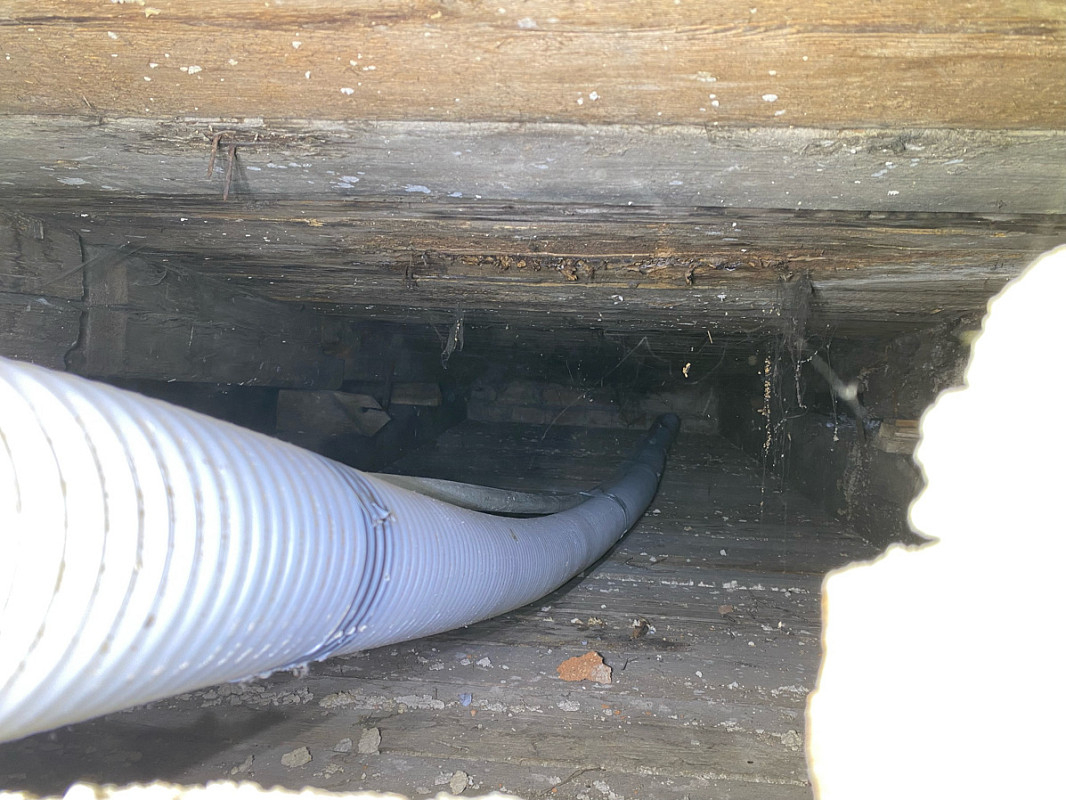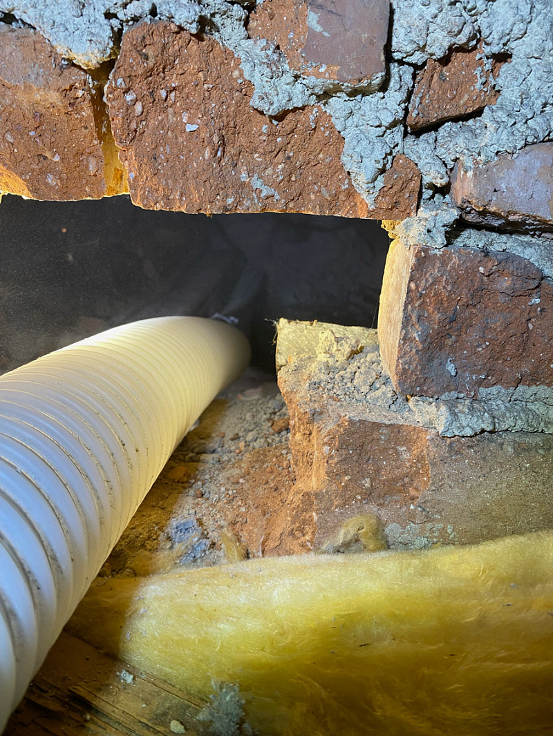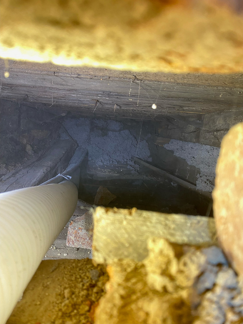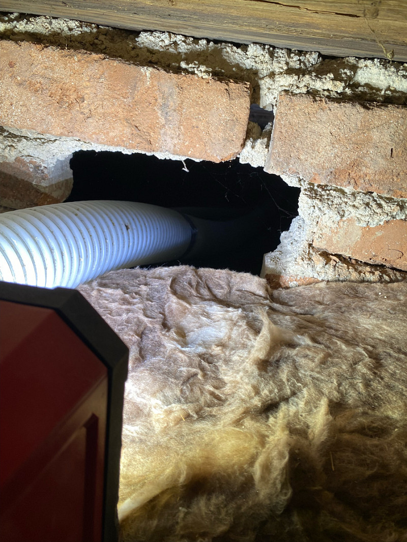 Přístup byl pouze přes malé otvory ve zdi, ovšem každý problém má své řešení a tak je každý kout vyplněn izolací.