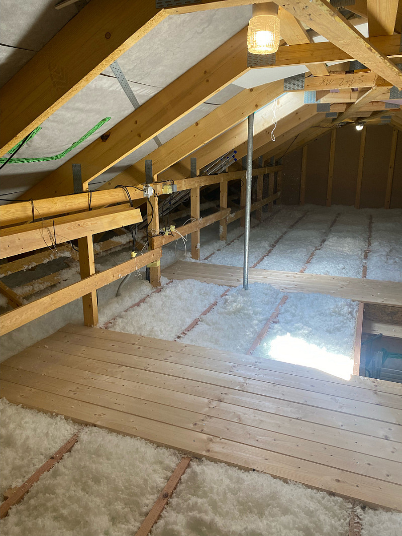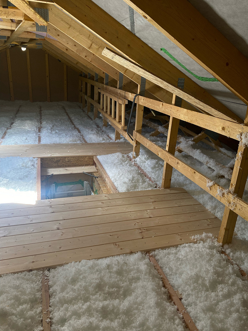 Vzhledem k drahým energiím se majitel rozhodl přidat izolaci do půdního prostoru. Stávající izolace měla místy mezery, kudy unikalo teplo a byla v nedostatečné tloušťce. Foukanou izolací jsme vyrušili veškeré tepelné mosty a vytvořili jednotnou “peřinu” v celé ploše.