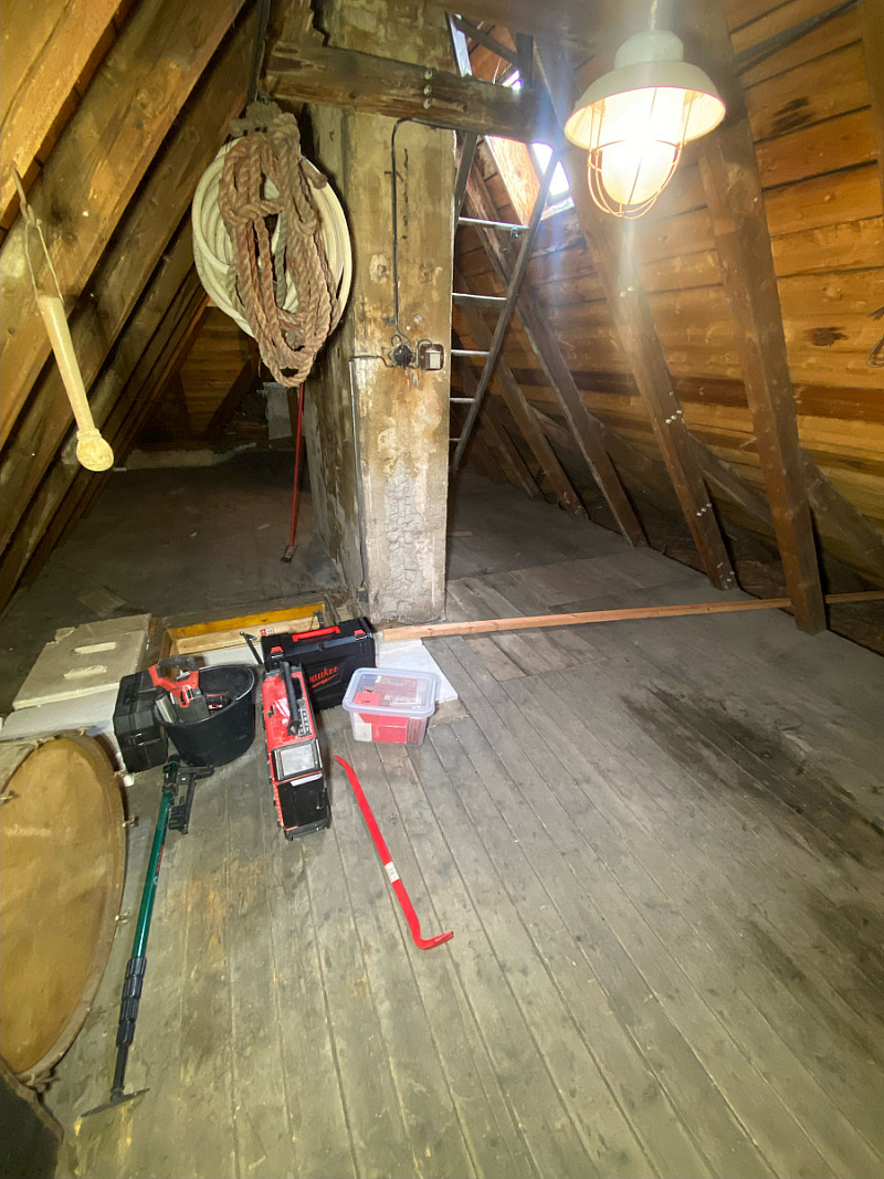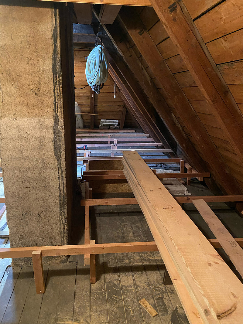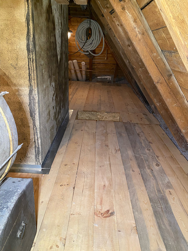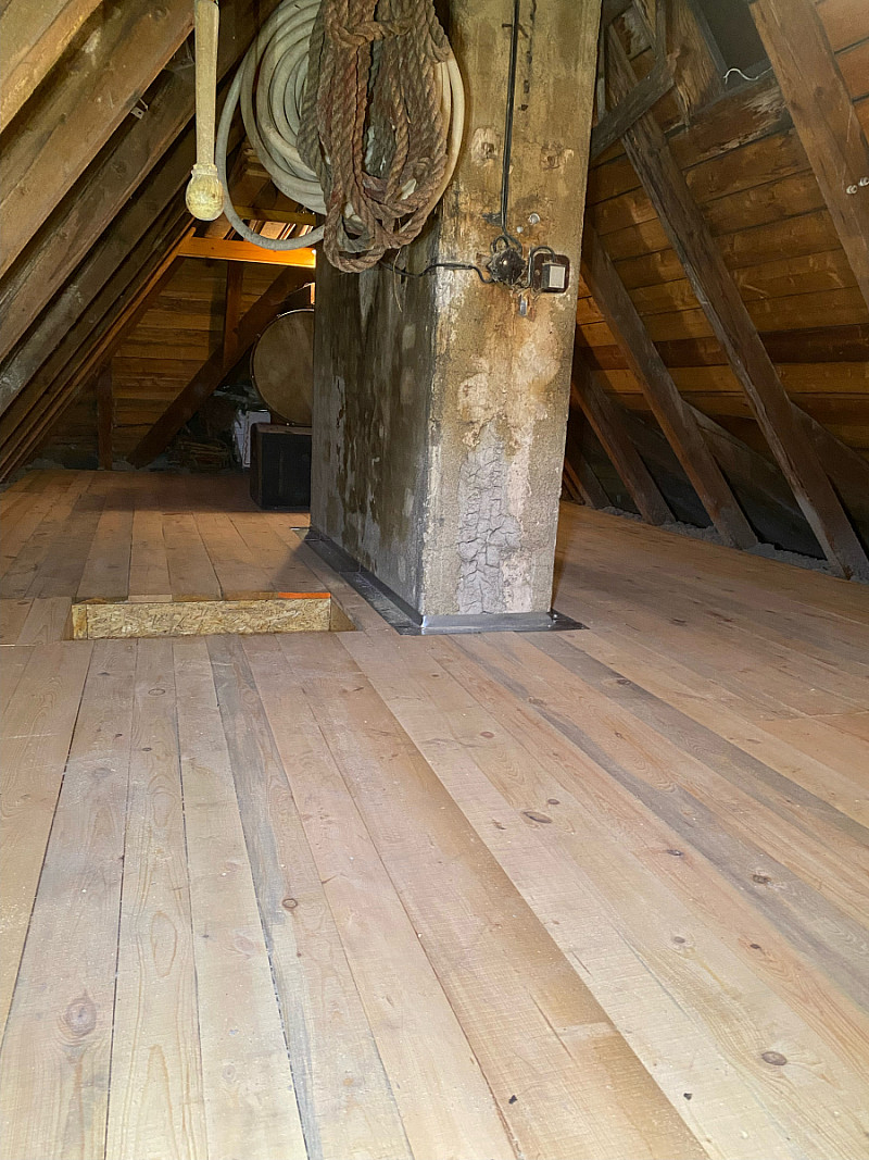 Majitelé chtěli i nadále využívat prostornou půdu, proto jsme v celé ploše vytvořili prkennou podlahu.