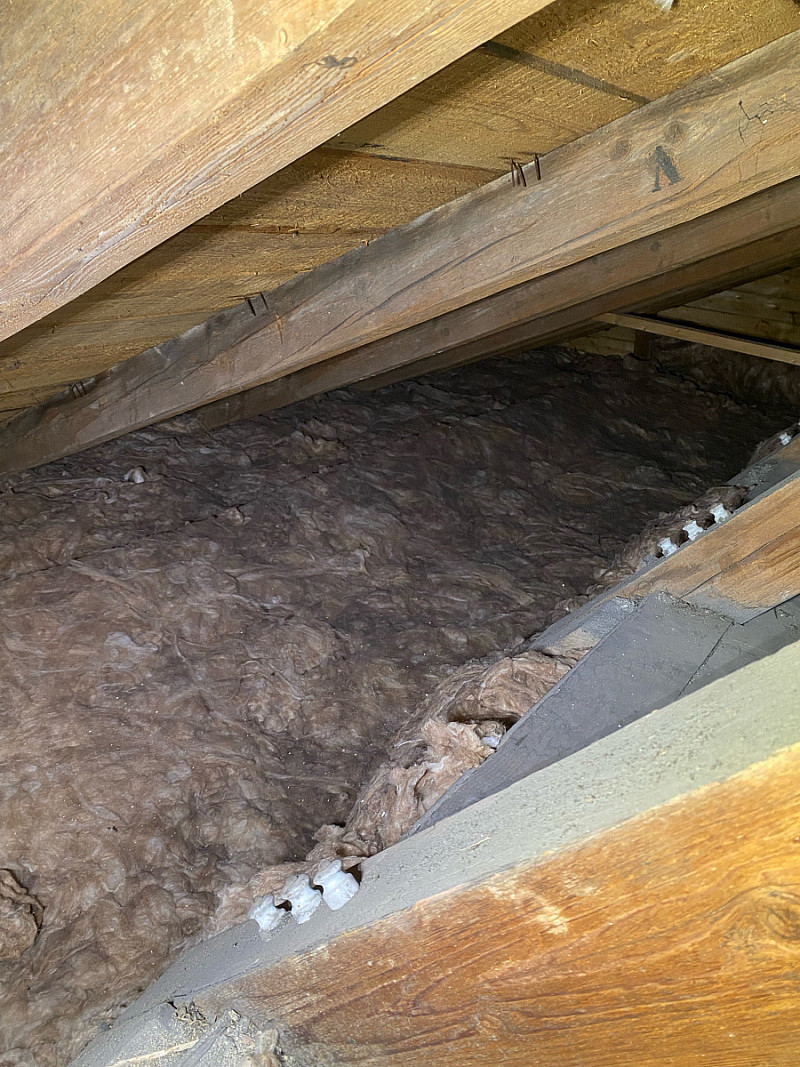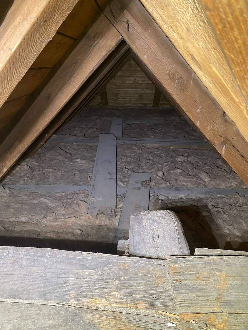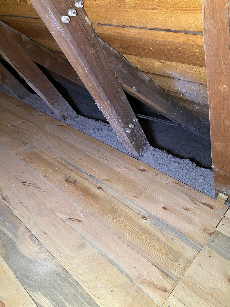 Tento dům s členitou půdou měl minimální izolaci a místy žádnou. Proto byla jedinou možností foukaná izolace, která se dostane všude vč. nepřístupných míst, jako jsou šikminy.