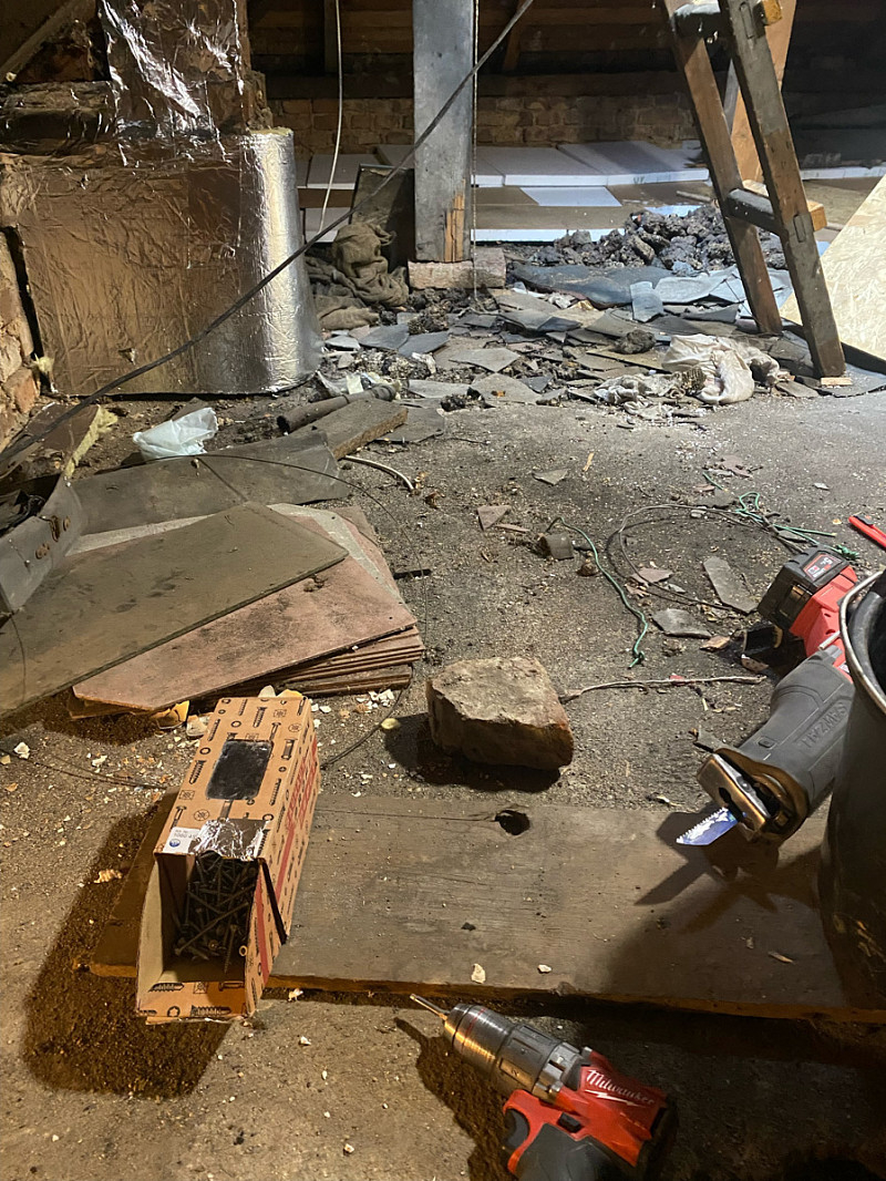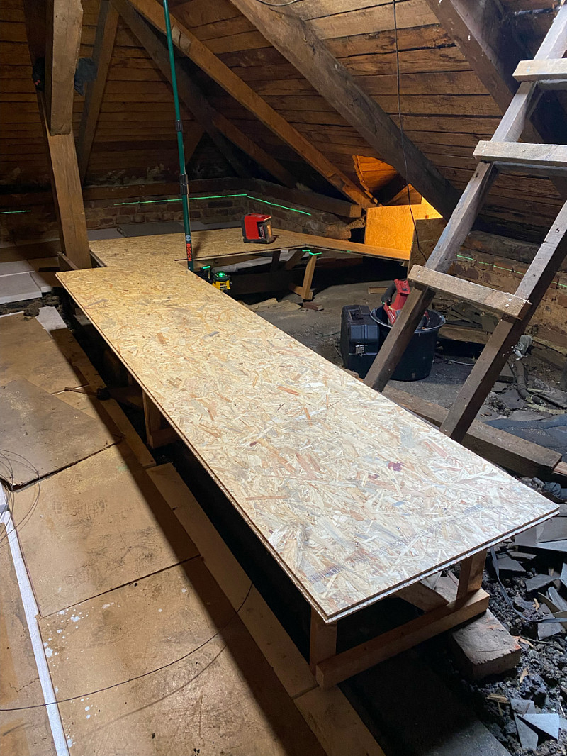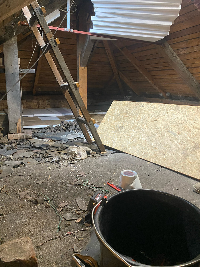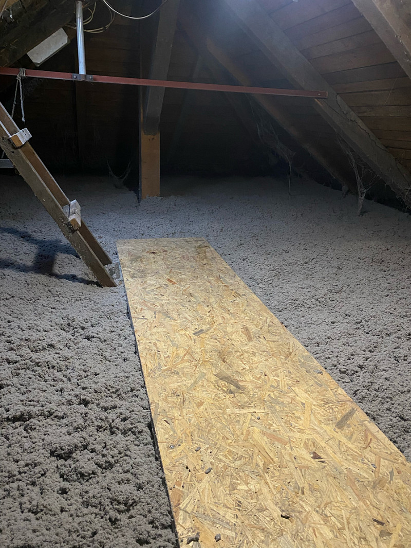 Aplikovaná tloušťka 35-40cm, izolace komínu a vytvoření pochozí lávky. Vše bylo hotovo za 7,5 hodiny.