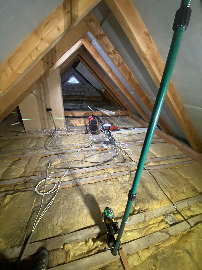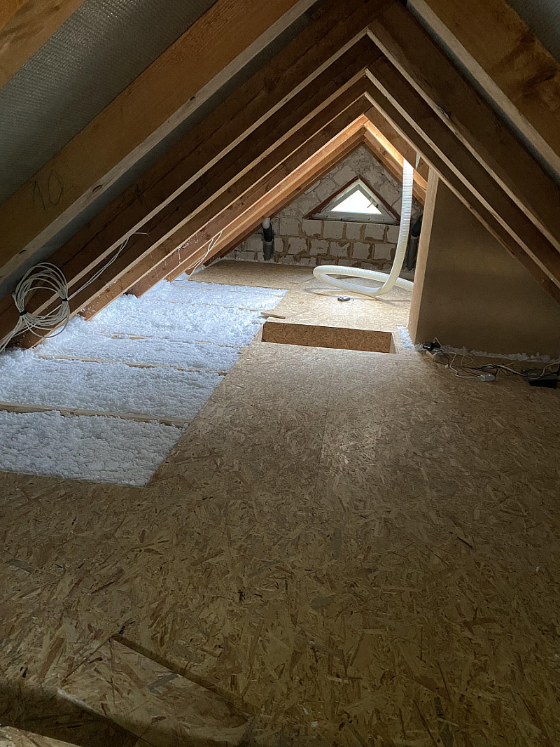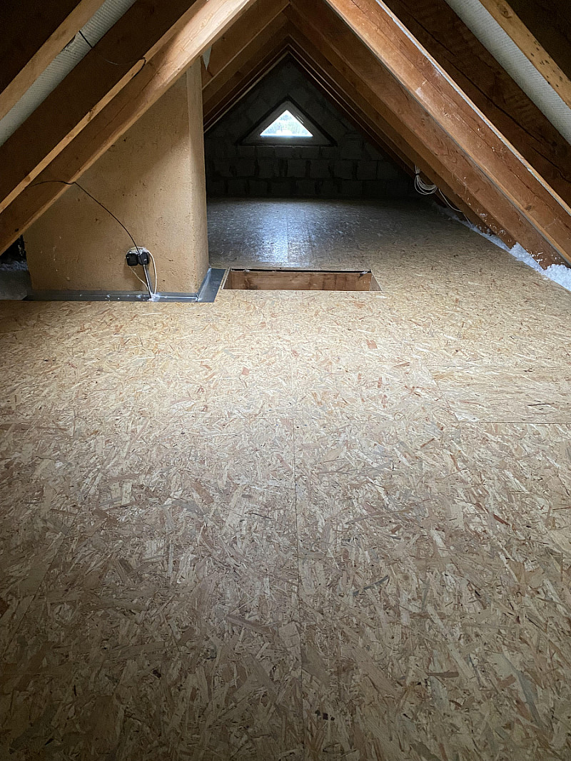 Tento dům měl nedostatečnou izolaci s velkým množstvím tepelných mostů. To se projevovalo kondenzací vody a pravděpodobně vyššími účty za energie. Z původně nevyužitého půdního prostoru jsme díky vyvýšené podlaze udělali taneční parket, kam se vejde nespočet nepotřebných věcí. Vše bylo hotovo za 9 hodin.