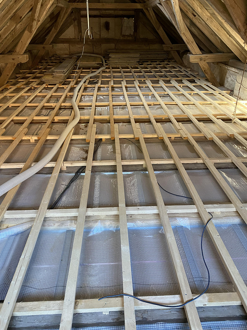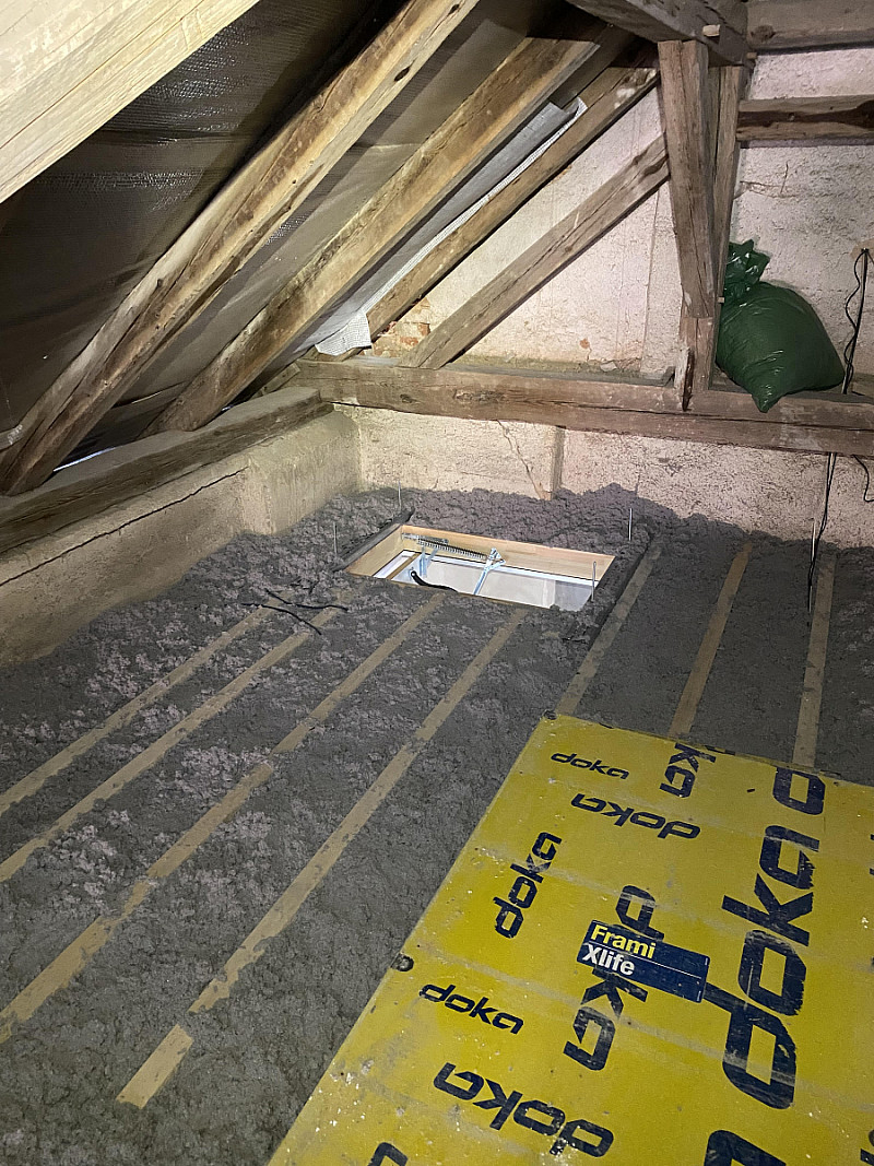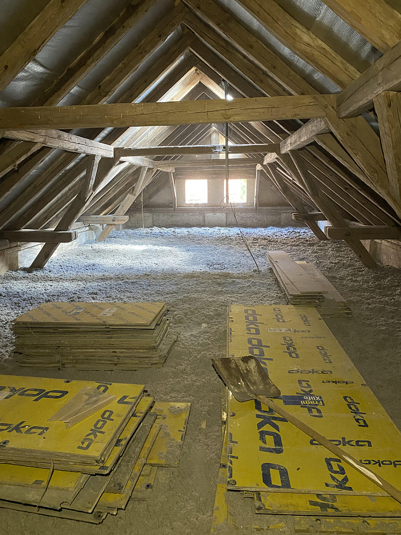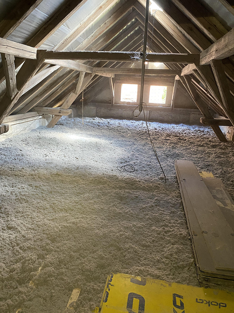 Tento objekt potřeboval zateplit stropy nad nově vznikajícím ubytovacím zařízení. Tloušťka byla omezena z důvodu budoucí půdní vestavby. Vše bylo hotovo za pouhé 3 hodiny. Materiál: Celulóza ThermoFloc.